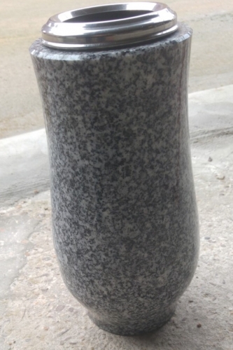 Jarrón o búcaro de granito, material muy duro y resistente , para panteón, con forma de cuello.