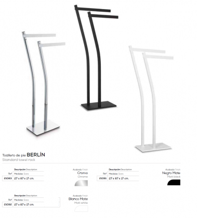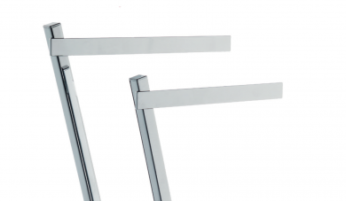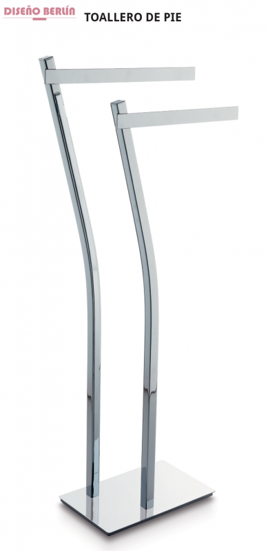 Accesorio de baño de suelo para colocar dos toallas de baño en sus dos barras fijas.