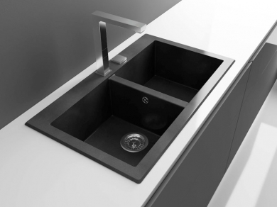 Diseñado para instalar sobre encimera o bajo encimera, de 2 cubetas.