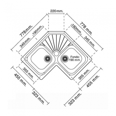 Diseñado para encastrar en encimera, con dos cubetas y 1 escurridor en escuadra