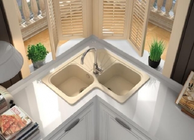 Estos fregaderos están fabricados con resinas y reforzados con cargas minerales naturales (cuarzos, sílices, alúminas), debido a estos materiales poseen propiedades antibacterias. además de facilitar la limpieza, ya que se puede usar productos anti calcáreos ,legía,e incluso acido Clorhídrico .