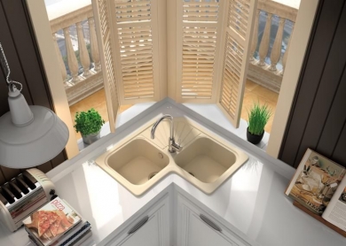 Fregadero sintético, fabricado con materiales ecológicos bajo el sello LINATURE by POALGI
