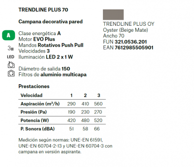 Aspiración en Máx. (UNE EN-61591) 560 m3/h