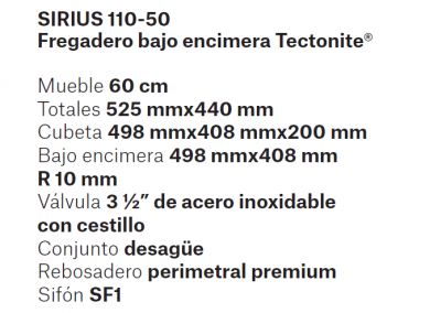 - Bajo Encimera: 49,8x40,8 cm R:1