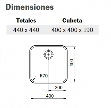Dimensiones de la cubeta: 400 x 400 x190mm (ancho x fondo x Profundo)