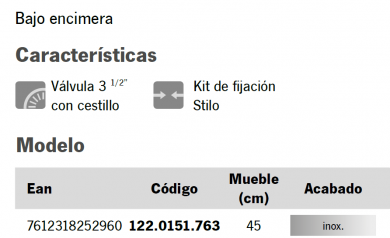 Dimensiones del hueco: según plantilla (ancho x fondo )