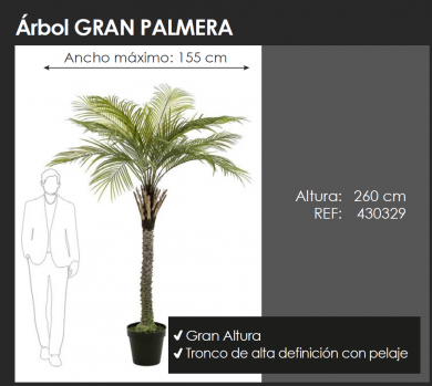 Árbol GRAN PALMERA de alto realismo, de hojas de color verde lima y tronco de alta definición