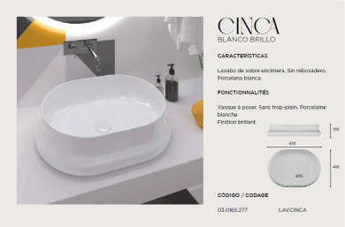 LAVABO DE CERÁMICA SOBRE ENCIMERA CINCA PORCELANA ARTANDBATH.