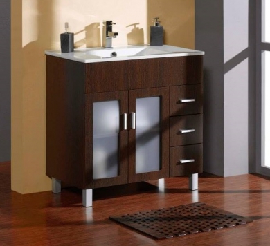 Con dos puertas con vitrina y tres pequeños cajones laterales