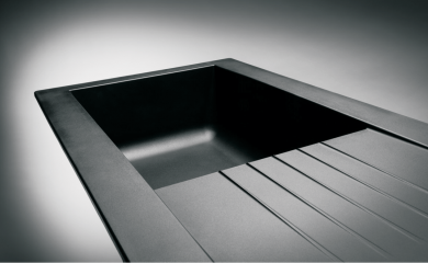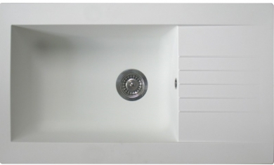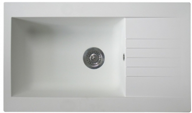 Fregadero sintetico, con una cubeta y un escurridor, fabricado por Sintetika, fabrica española dedicada a la fabricación de fregaderos desde hace varias décadas.