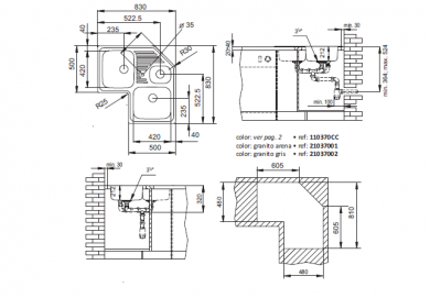 Se incluye conjunto de tubos para conexión de tres cubetas con sifón y toma de lavabajillas