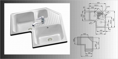 Fregadero sintético, con una cubeta y un escurridor, fabricado por Sintetika, fabrica española dedicada a la fabricación de fregaderos desde hace varias décadas.