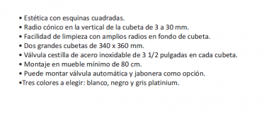 Facilidad de limpieza por la amplitud de los radios en el fondo de cubeta