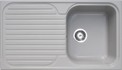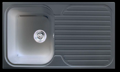 Fregadero sintético, con una cubeta y un escurridor, fabricado por Sintetika, fabrica española dedicada a la fabricación de fregaderos desde hace varias décadas.