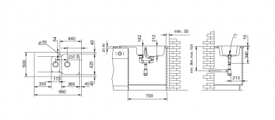 Montaje estándar en mueble de 50cm,