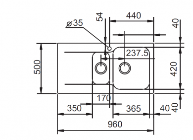 Fregadero sintético, con dos cubeta y