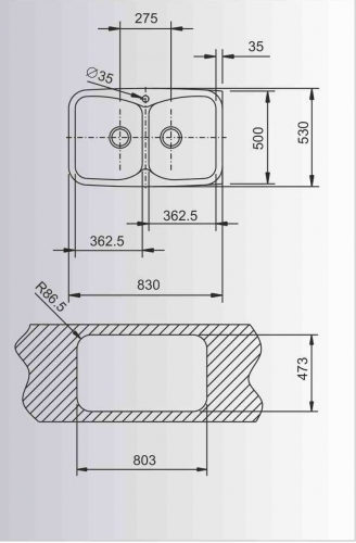 Fregadero salva-espacio de 530mm pero en un hueco estandar de fregadero de 500mm