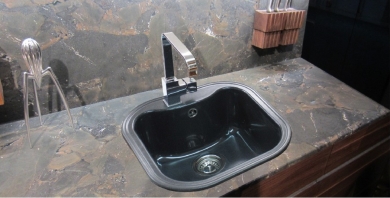 Fregadero sintético, con una cubeta por Sintetika, fabrica española dedicada a la fabricación de fregaderos desde hace varias décadas.