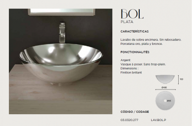 LAVABO DE CERÁMICA SOBRE ENCIMERA BOL PLATA - DECORATIVO ARTANDBATH