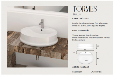 LAVABO DE CERÁMICA SOBRE ENCIMERA TORMES ARTyBATH.