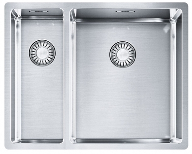 Fregadero de acero inoxidable que armoniza perfectamente con casi todos los materiales con que se equipa la cocina, de fácil limpieza, resistente al calor (la temperatura de fusión del Inox se sitúa en el umbral de los 1450°C) y también a la corrosión.