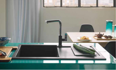 Fregadero encastre Fragranite resistente: al calor, hasta los 280ºC, a la rayas (superficie extremadamente sólida), a la abrasión, a las agresiones químicas, a las manchas, al choque térmico y a las bacterias (Sanitized®), para mueble de 60 cm. Reversible.