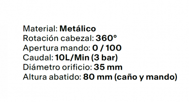 > Altura abatido (caño y mando): 80 mm.