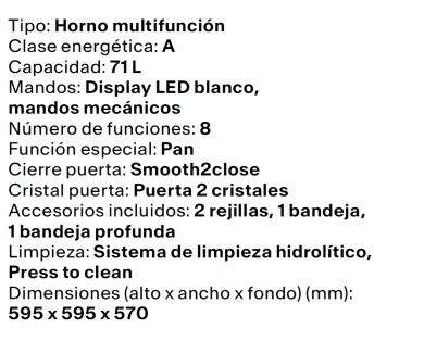Tipo Horno Multifunción
