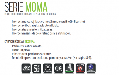 Plato de ducha fabricados en Stone, este material alcanza su gran calidad gracias a la combinacion de materias primas totalmente naturales como son el Cuarzo y la Mormolina que combinadas con elPoliester y resinas isoftálicas endurecidas e Isho-gel sanitario,materia que le aporta una terminacíon de alta calidad resistente al rayado, a la degradación y la hidrólisis