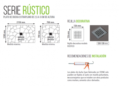 Plato de ducha fabricados en Stone AQUASILK, este material alcanza su gran calidad gracias a la combinacion de materias primas totalmente naturales como son el Cuarzo y la Mormolina que combinadas con elPoliester y resinas isoftálicas endurecidas e Isho-gel sanitario,materia que le aporta una terminación de alta calidad resistente al rayado, a la degradación y la hidrólisis
