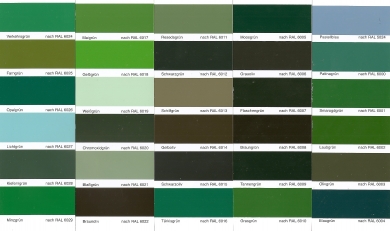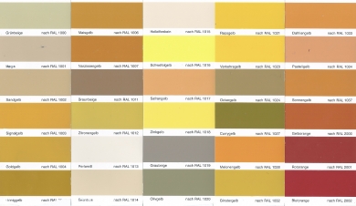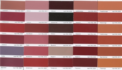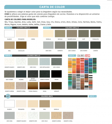 Se puede elegir entre 32 colores de la carta de colores Syan, clasificados en :