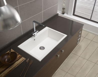 El fregadero Vali es un fregadero de 1 seno para montaje sobre encimera o bajo encimera. Se puede montar en muebles, con una anchura desde 80 cm para instalación sobre encimera y muebles con anchura desde 90cm para instalación bajo encimera. La profundidad del fregadero es de 230 mm.