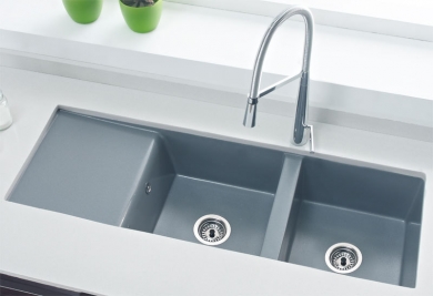 Los fregaderos SYAN están fabricados con resinas isoflálicas endurecidas con micro-esferas de vidrio y cuarzos y marmolinas, ofreciendo una especial resistencia al agua y al envejecimiento, abrasión y calor, y otorgandole propiedades Antibacterias