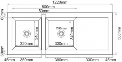 El fregadero Core es un fregadero de 2 cubetas y escurridor para montaje sobre encimera o bajo encimera. Se puede montar en muebles, con una anchura desde 80 cm para instalación sobre encimera y muebles con anchura desde 120cm para instalación bajo encimera. La profundidad del fregadero es de 230 mm.