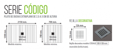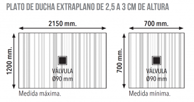 Plato de ducha extraplano de 2,5cm a 3 cm de altura