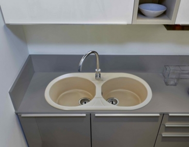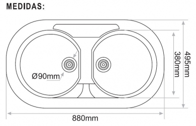 El fregadero delfos es un fregadero de dos cubeta y para montaje sobre encimera . Se puede montar en muebles, con una anchura desde 90 cm . La profundidad del fregadero es de 185 mm.