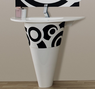 Lavabo con pedestal fabricado en Stone, con forma semicircular