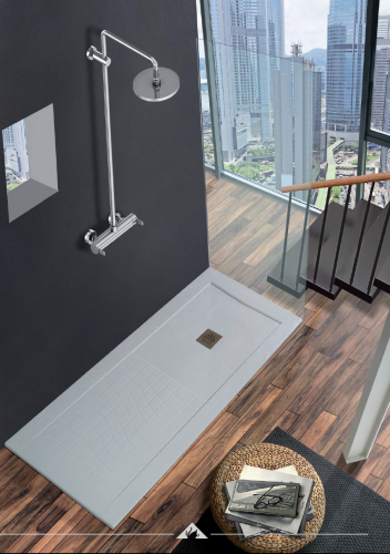 Plato de ducha fabricados en Stone AQUASILK, este material alcanza su gran calidad gracias a la combinación de materias primas totalmente naturales como son el Cuarzo y la Mormolina que combinadas con elPoliester y resinas isoftálicas endurecidas e Isho-gel sanitario,materia que le aporta una terminación de alta calidad resistente al rayado, a la degradación y la hidrólisis