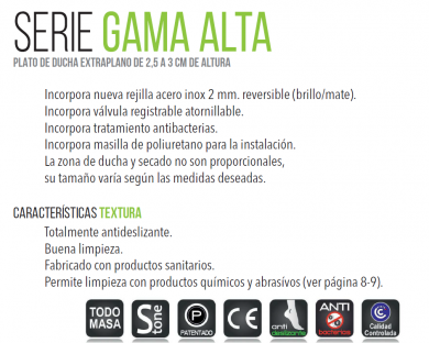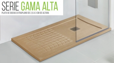 Plato de ducha extraplano de 2,5cm a 3 cm de altura que delimita la zona de ducha con la de secado