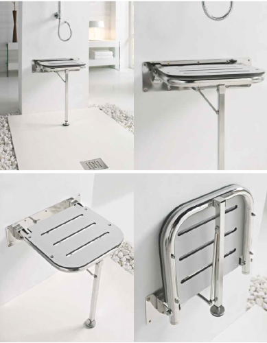 Asiento abatible para platos de ducha reducidos, con pata de apoyo regulable en altura. MOD. 304 - Beltran
