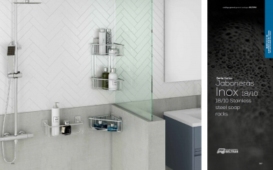 Esquinera inox 18/10 Doble con dos jaboneras profundas.