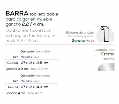 Barra toallero doble para colgar en mueble de Beltran