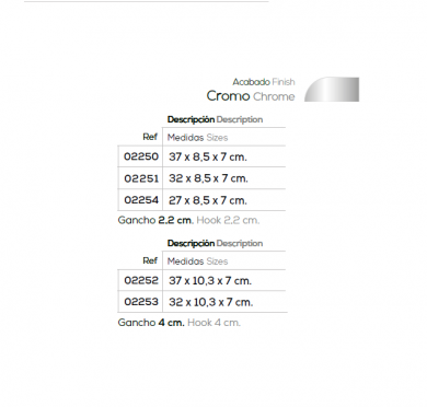 con dos medidas en la anchura de los ganchos de 2.2cm y 4cm