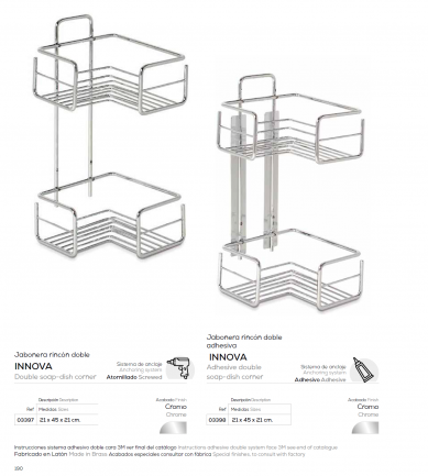 Jabonera de rincón doble , modelo Innova para atornillar o pegar de Beltran