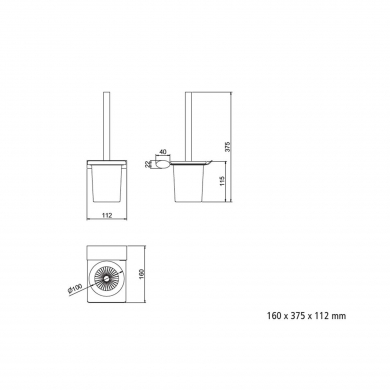 El escobillero OMEGA de vidrio matizado. Este cuenta con un soporte fijo a pared y un mango de