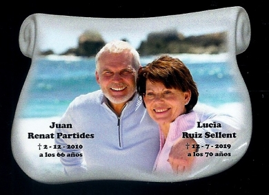 Pergamino de Cerámica, con los bordes en relieve , para crear el mejor recuerdo de tu ser querido, realizado con los últimos sistemas de impresión y modulación, resistentes a las inclemencias del tiempo, consiguiendo así que perdure como nuevo durante muchos años.