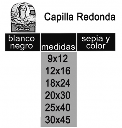 Foto realizada en porcelana con FORMA DE CAPILLA REDONDA, para pegar o insertar en lapida o panteón, realizada con las últimas técnicas de impresión y modulación, para conseguir una gran duración.