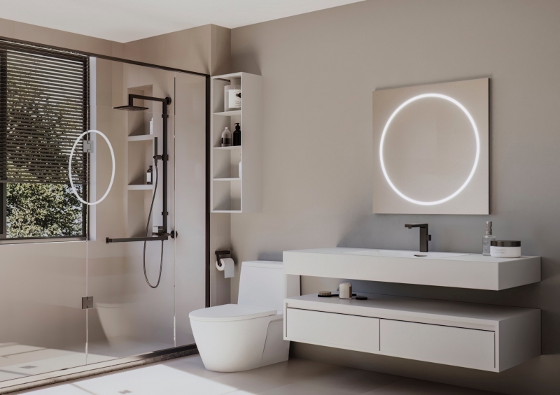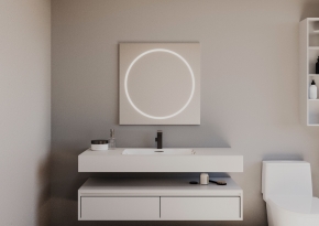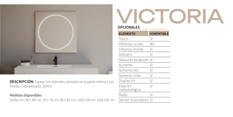 Espejo con diámetro arenado en la parte interna y luz frontal