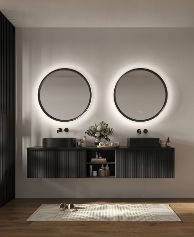 Espejo redondo, con doble tira led retroiluminada y perimetral.