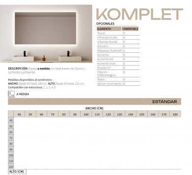 Alto: Desde 40 Ø cm hasta 120 Ø cm / Ancho: Desde 40 Ø cm hasta 180 Ø cm